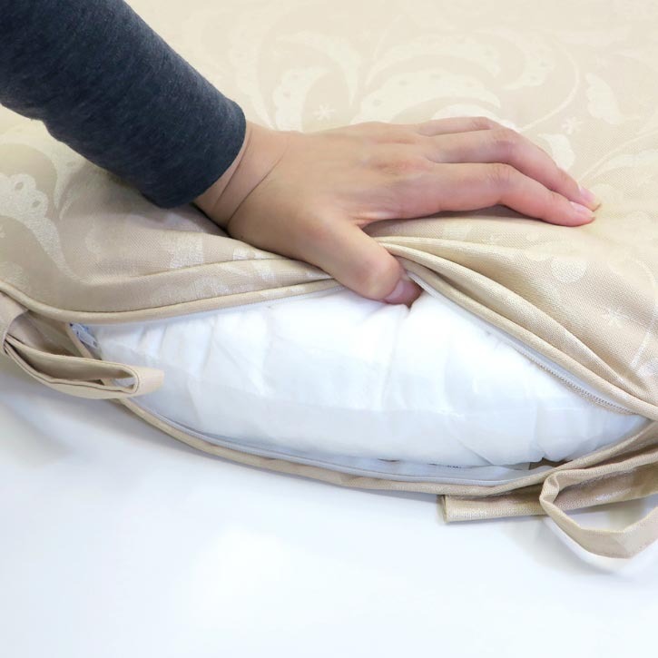 後部ののファスナーで取り外してお洗濯可能で、長く清潔にお使い頂けます。