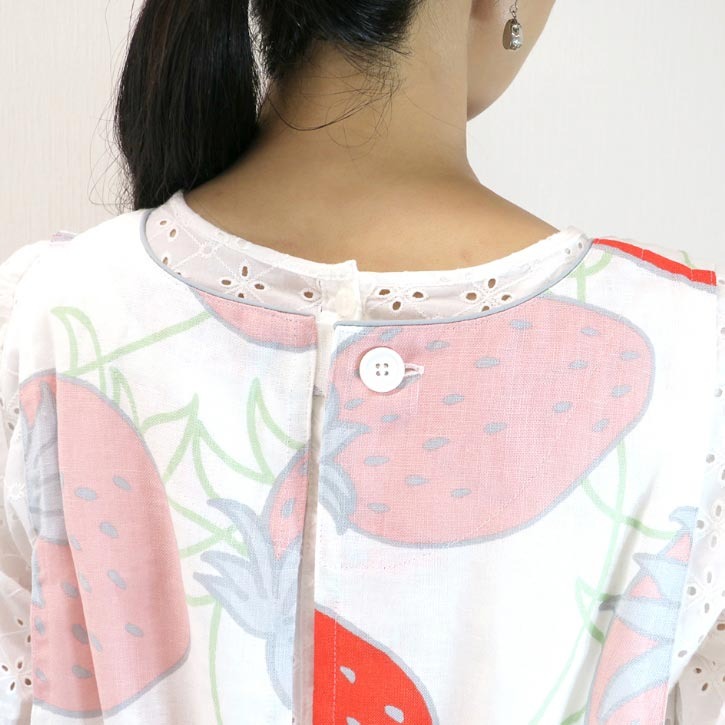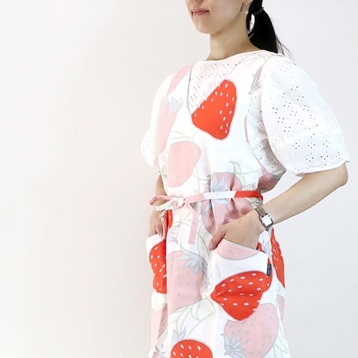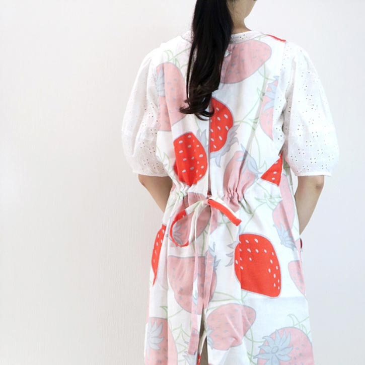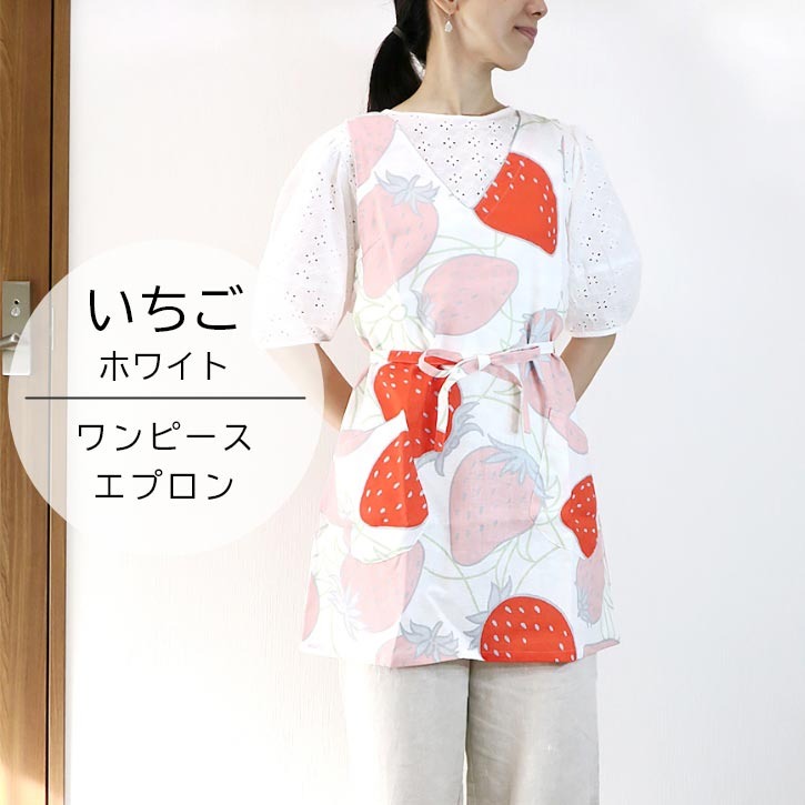 【ワンピースエプロン】いちご ホワイト 日本製リネン