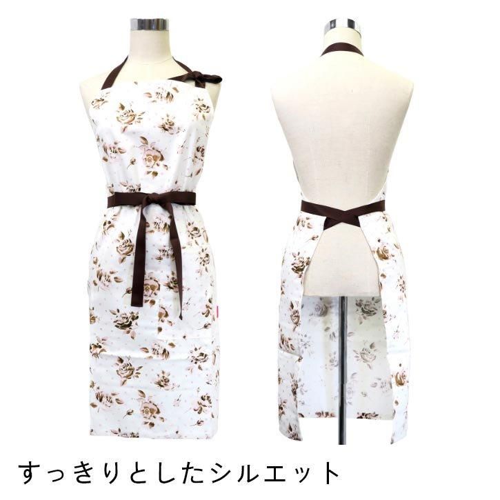 【首掛けエプロン】ドットローズ ベージュ スッキリタイプ