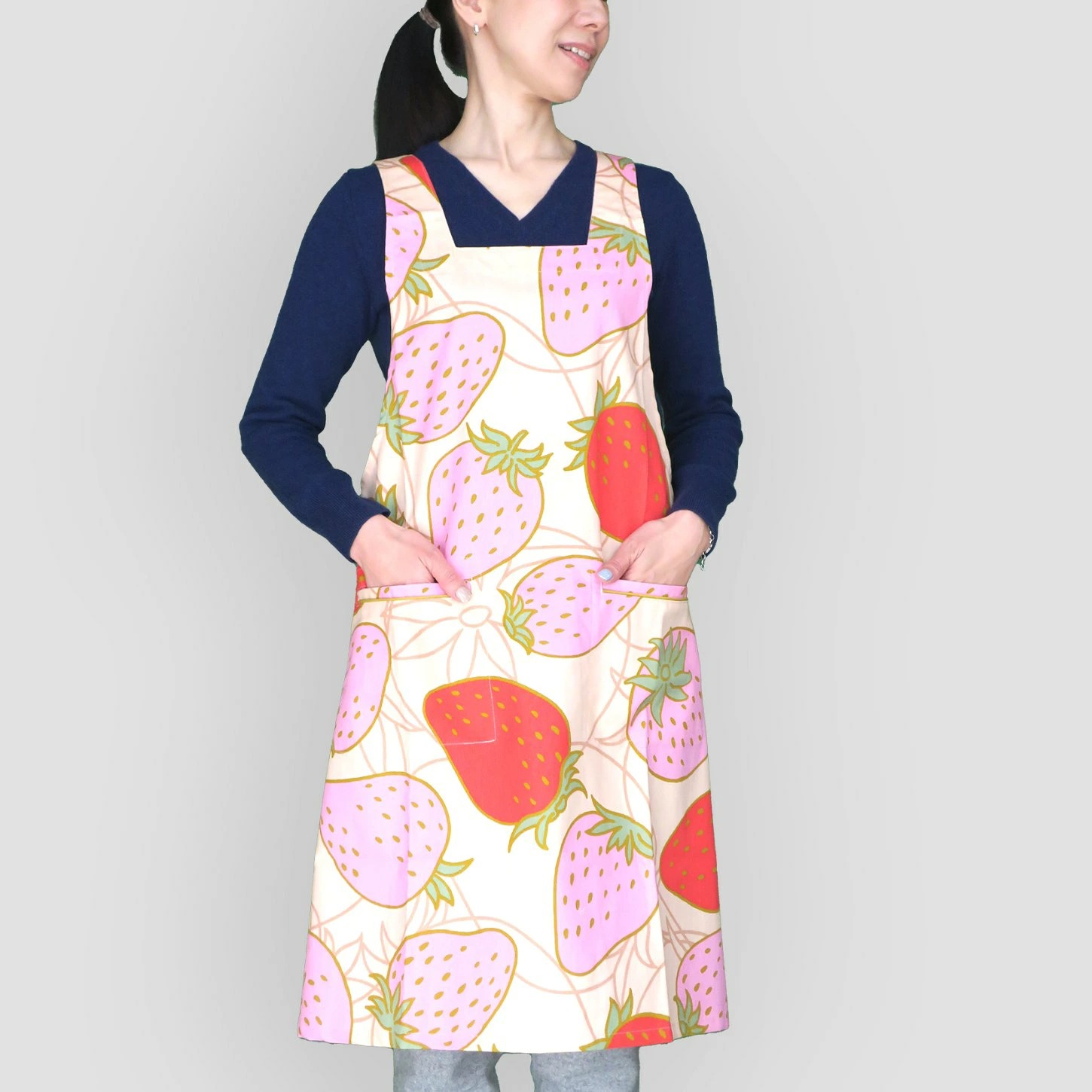 SALE!5000円均一【バッククロスエプロン】いちご ベージュ かぶり