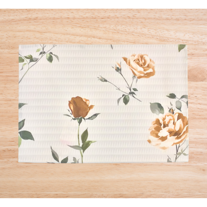 【ランチョンマット】ウォーターローズ(コーティング加工タイプ)グレー メール便 幾何柄をグランドに水彩調の薔薇を一輪ずつ描いた「ウォーターローズ」。日本製の綿100%オリジナル生地を近畿地方で染め上げ、表面にコーティングを施して作られたランチョンマットです。サイズは約32cm×45cmで、グレーの落ち着いた色合いが食卓を上品に演出します。 コーティングタイプ(塩ビラミコーティング)なので、汚れがついても拭くだけで簡単にキレイに保てます。インテリアにもマッチするデザインで、リビングやダイニングでの食事タイムをより楽しく彩ります。 汚れが取れない場合は中性洗剤をぬるま湯で薄めたもので拭き取り、水拭きしてください。お手入れも簡単で、いつも清潔な状態を保つことができます。ランチョンマットとしてだけでなく、ティータイムやワークスペースのアクセントとしてもお使いいただけます。 食事を楽しむだけでなく、日常の中に彩りを添えてくれる「ウォーターローズ」のランチョンマット。使う人の暮らしに華やかさと便利さをプラスしてくれる一枚です。 <取り扱い注意事項> - 洗濯不可ですので、汚れが取れない場合は中性洗剤をぬるま湯で薄めたもので拭き取り、水拭きしてください。 - 長時間直射日光を浴びたり、高温多湿な場所に保管しないでください。
