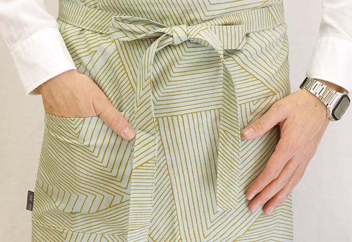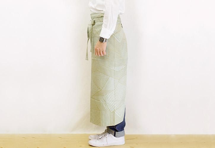 頭や腕を通さない腰巻きタイプのシンプルエプロンなので、