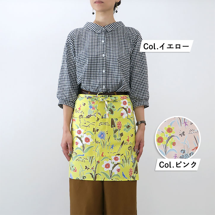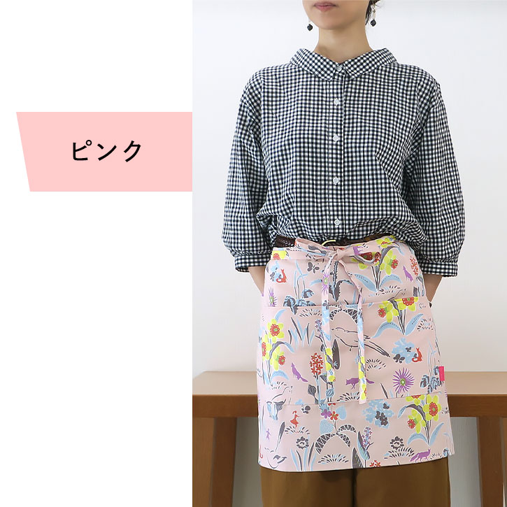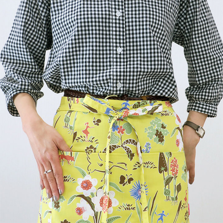 大胆なデザインと色使いの、おとなかわいいエプロンで