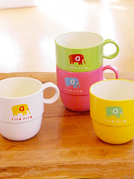 ゾウさんをプリントしたカラフルなキッズ向けのマグカップです。